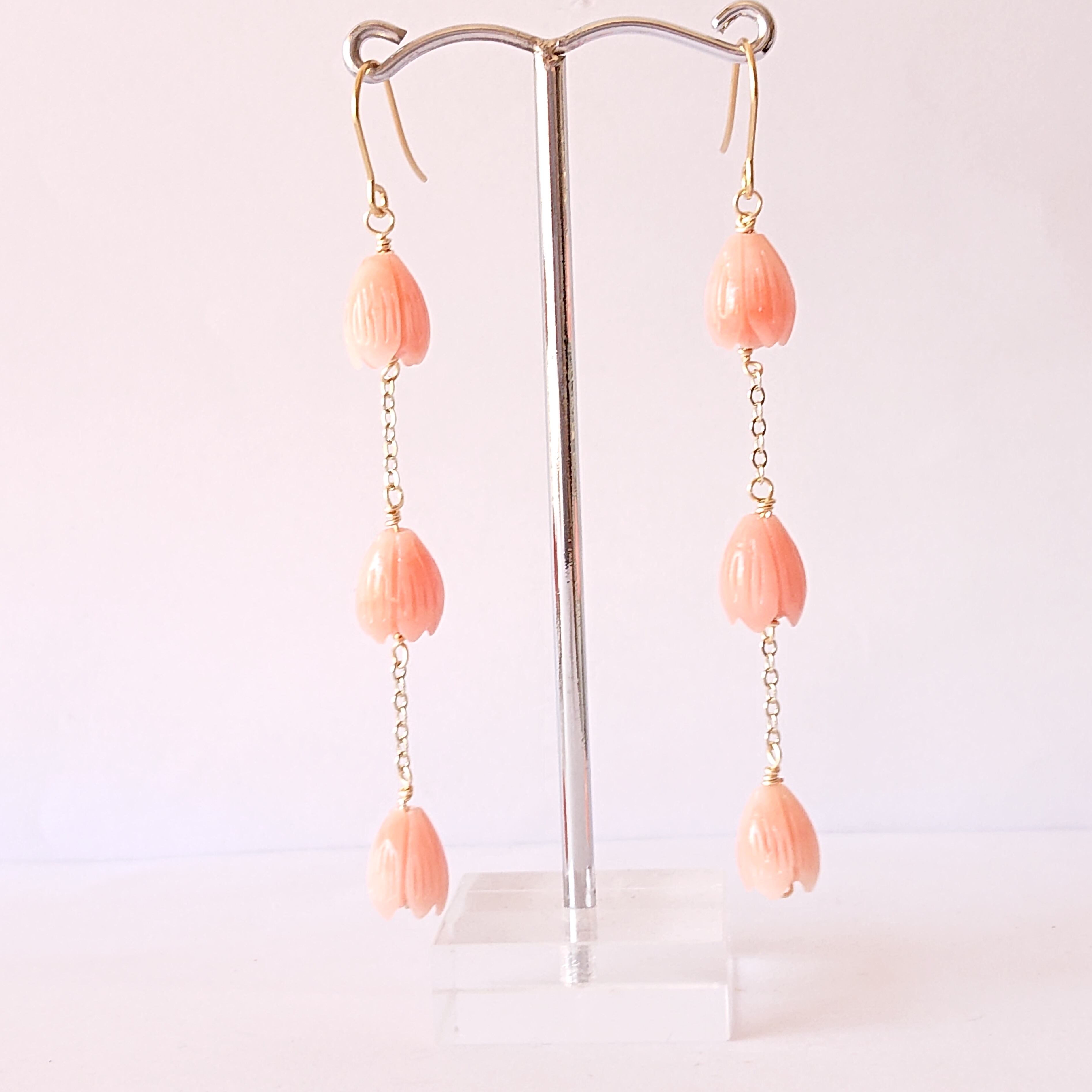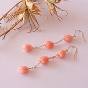 人工石で作られた可愛らしい花をロングピアスにしました。