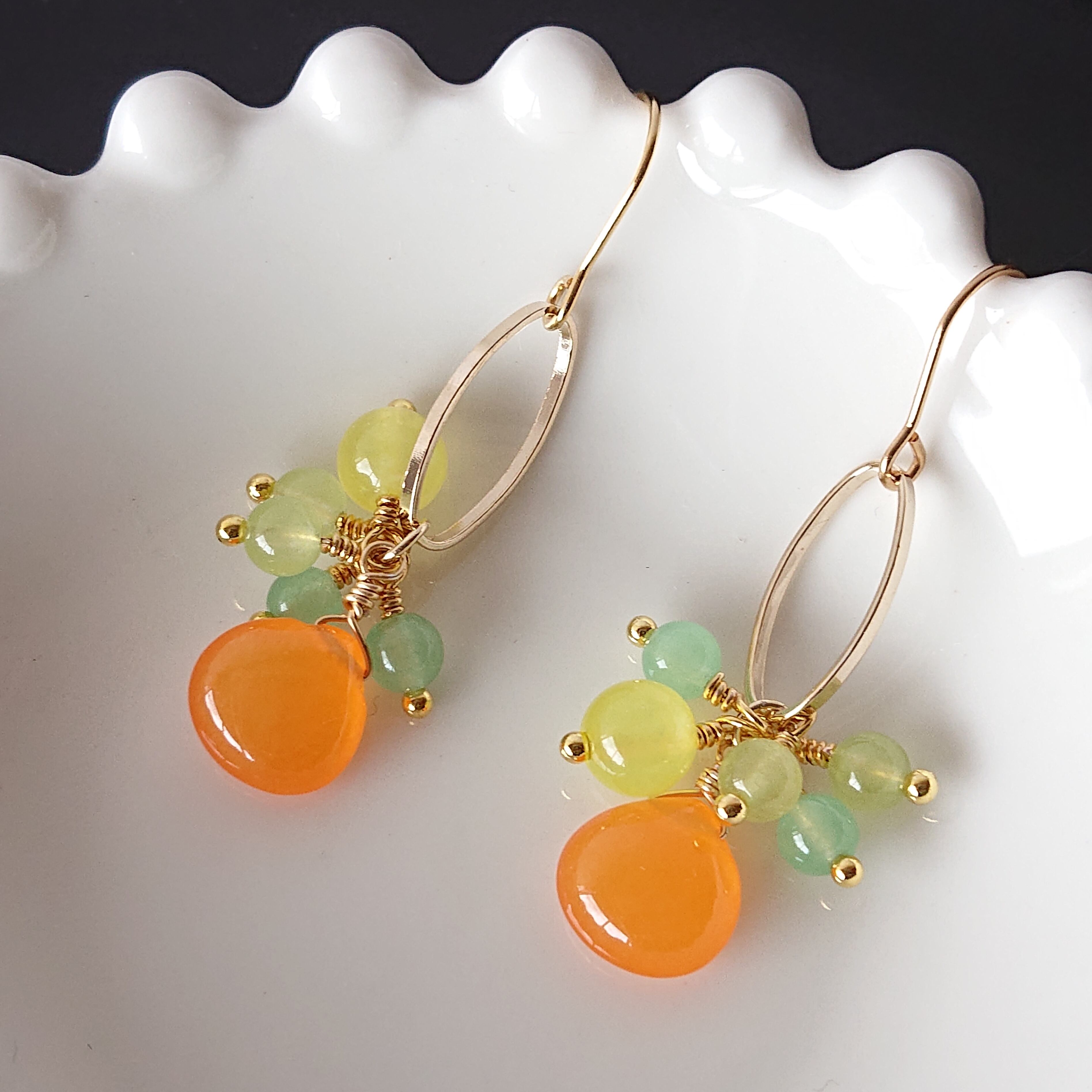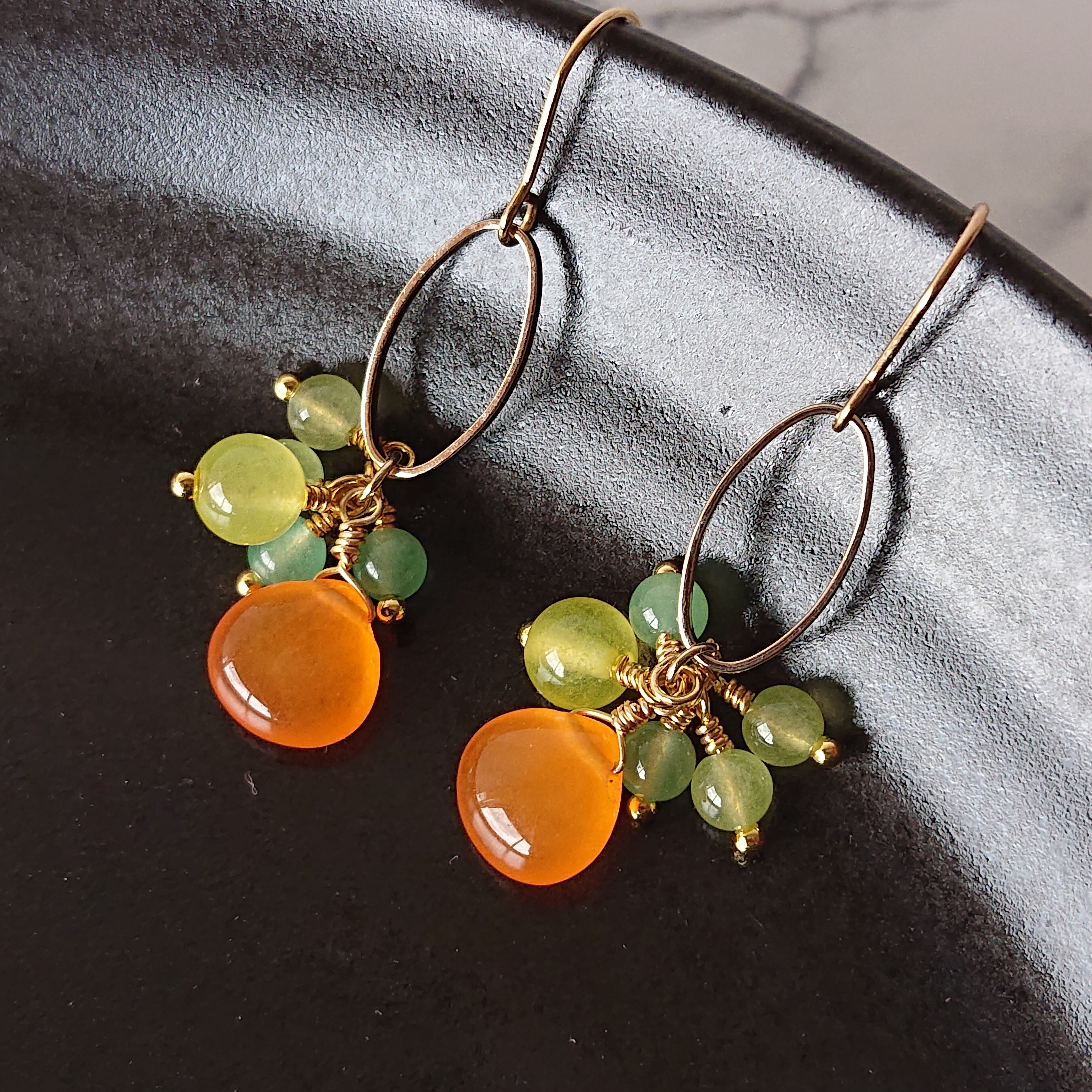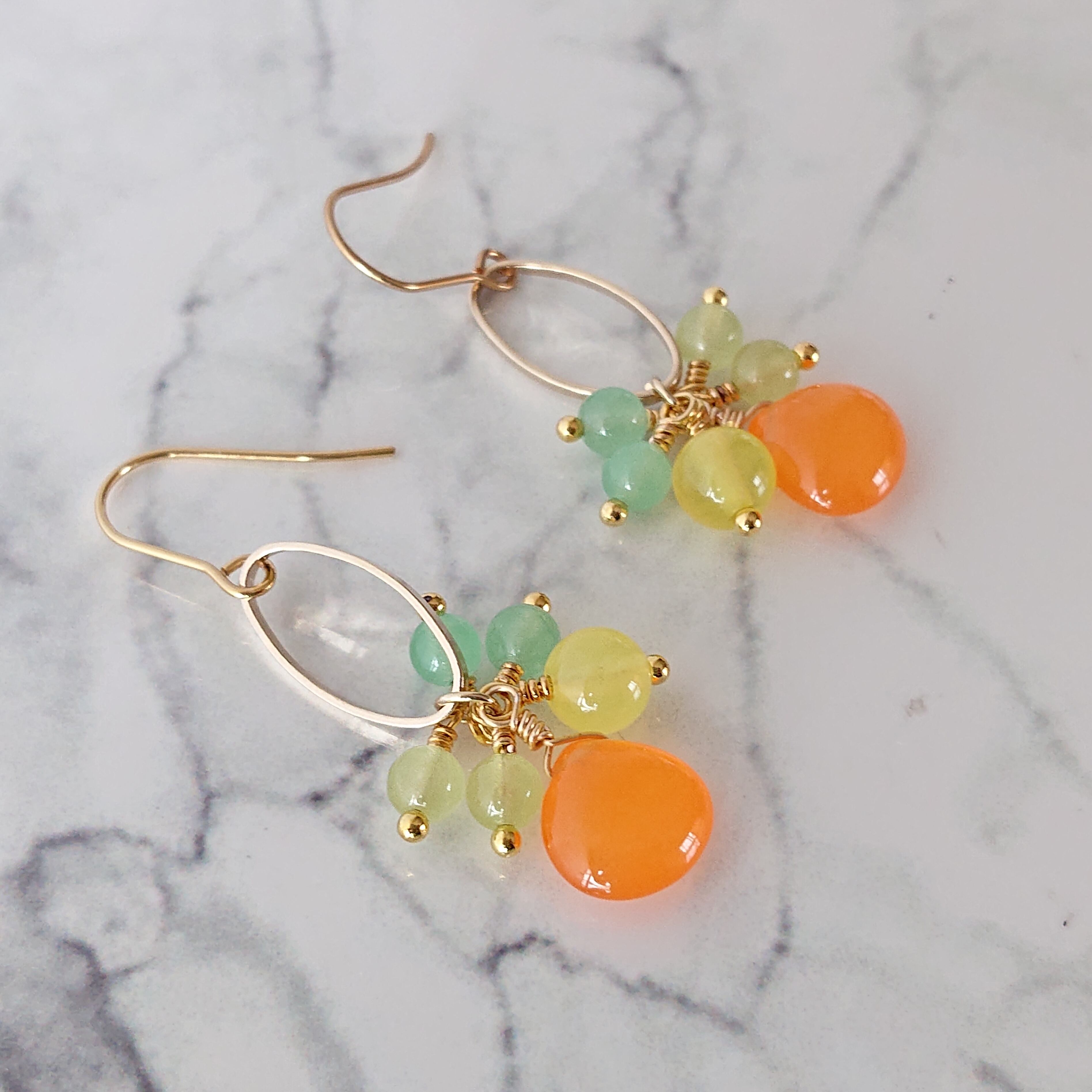 マンダリンオレンジのジェイドと、パステル系カルセドニーがかわいいピアス。
